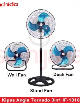 Rp 310.000Stand Fan Hachida IF-1818 Spesifikasi Detail Produk : – Kipas angin tumpu (berdiri/lantai/dinding) – Ukuran baling2: 18″ / 46 cm – 3 level kecepatan – Terdapat pengatur arah – Tinggi bisa diatur – Putaran: Rendah: 1030 RPM Tinggi: 1280 RPM – Daya: 70W – Tegangan: 220V – Frek: 50Hz